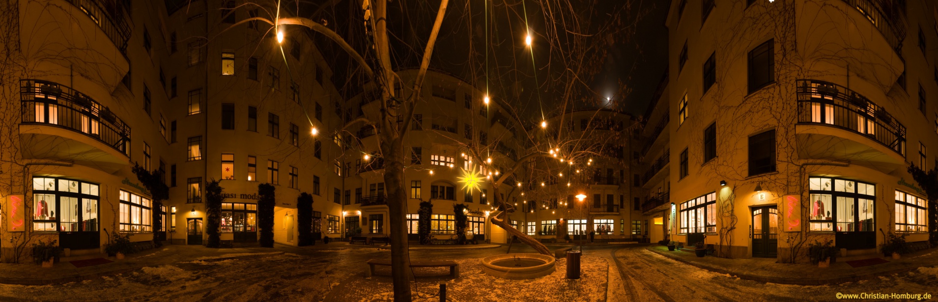 Nächtlicher Blick, aus den Hackeschen Höfen auf den Hackeschen Markt und Berliner Fernsehturm.