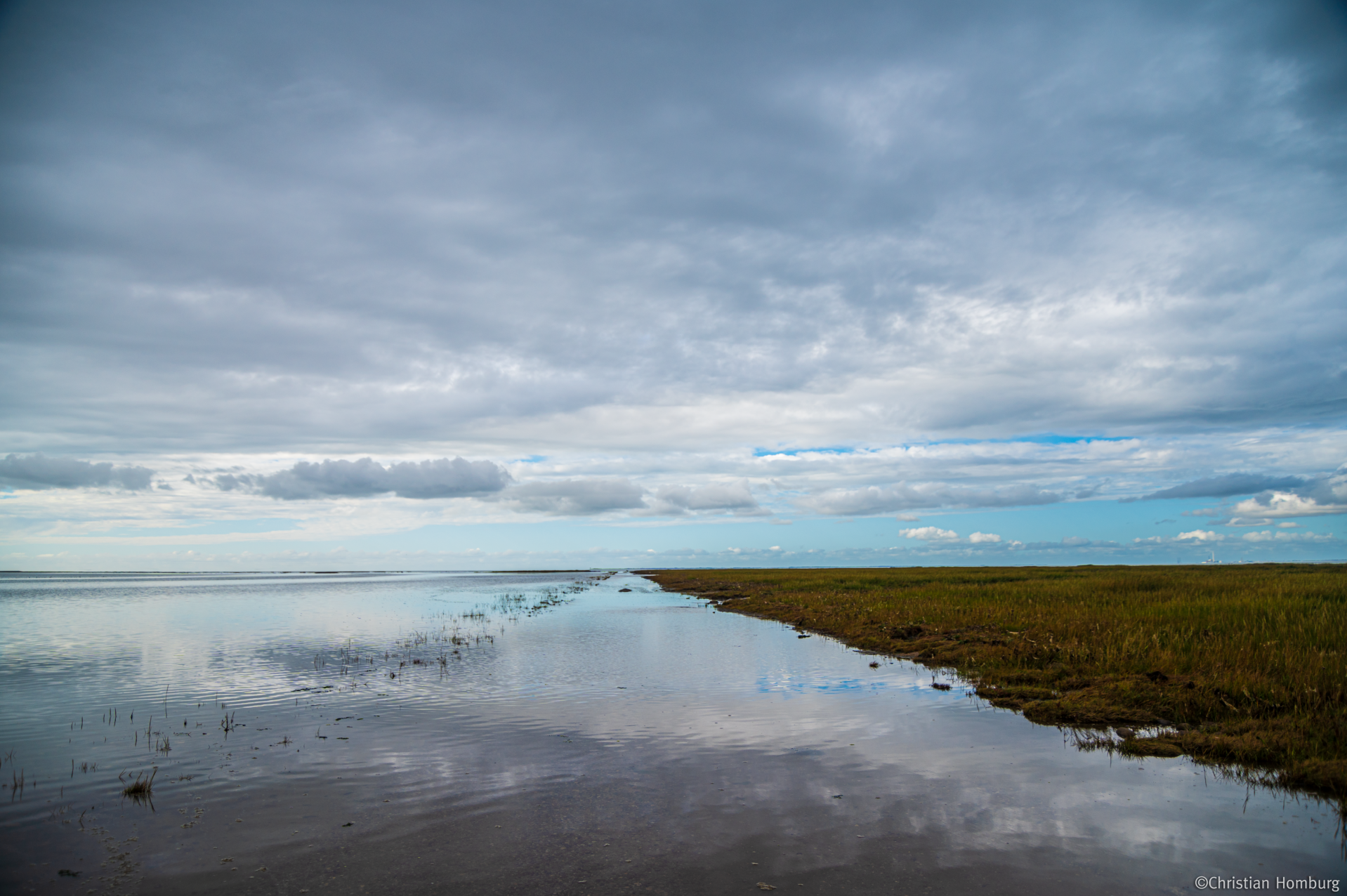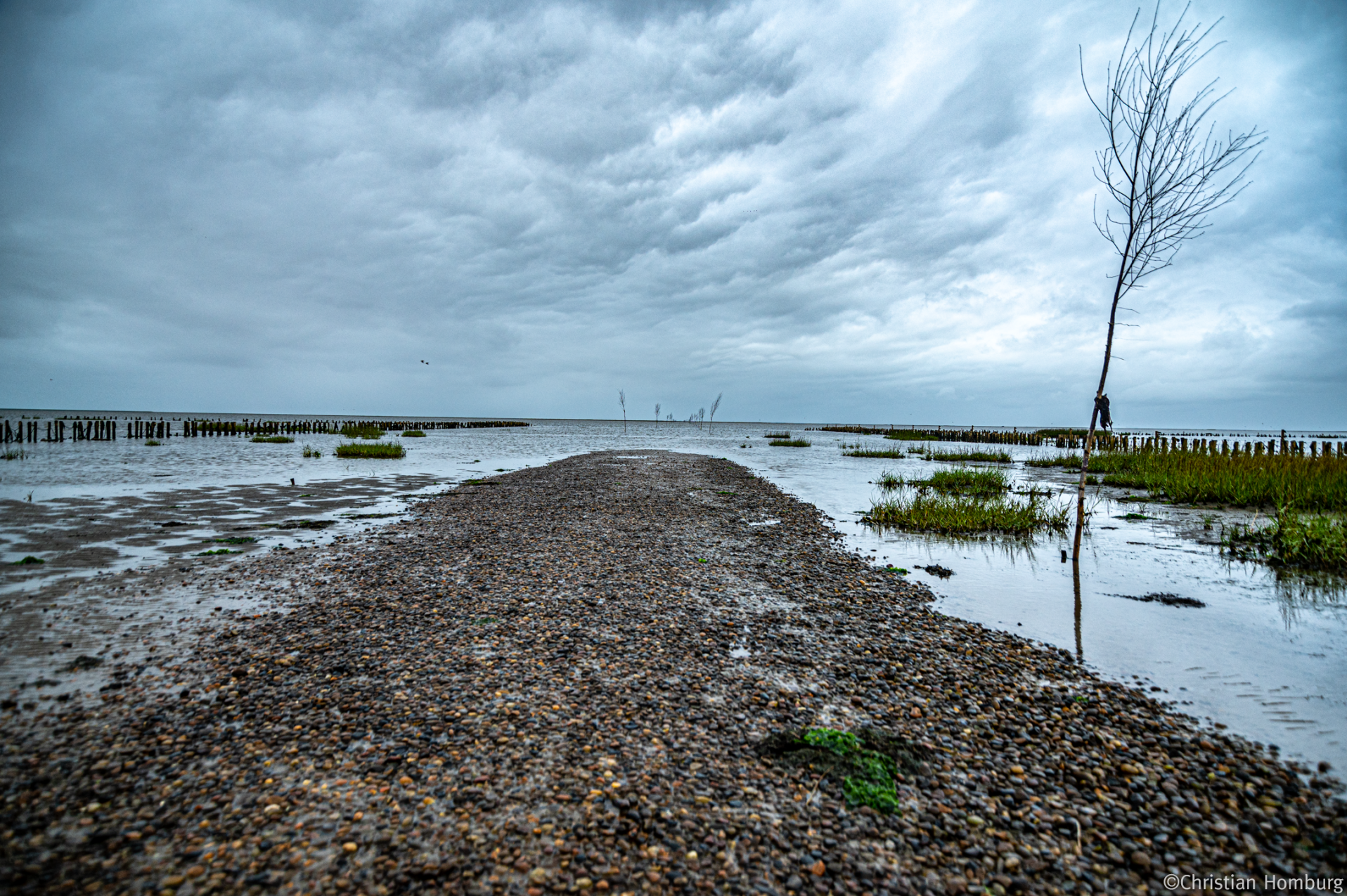 Der Weg zur Insel Mandø.Bei starken Westwind, haben die einheimischen abgeraten mit dem Auto zur Insel zu fahren.